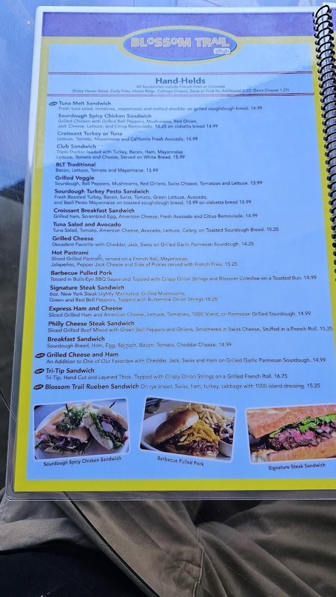 Blossom Trail Favorites: This group offers classic American comfort foods such as fish and chips, shrimp baskets, chicken strips, and mixed baskets, providing options for filling meals with protein and sides.